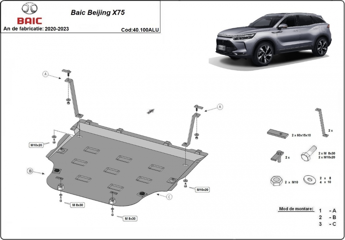 Aluminium Unterfahrschutz für Motor der Marke BAIC Beijing X75 (2020-2023)