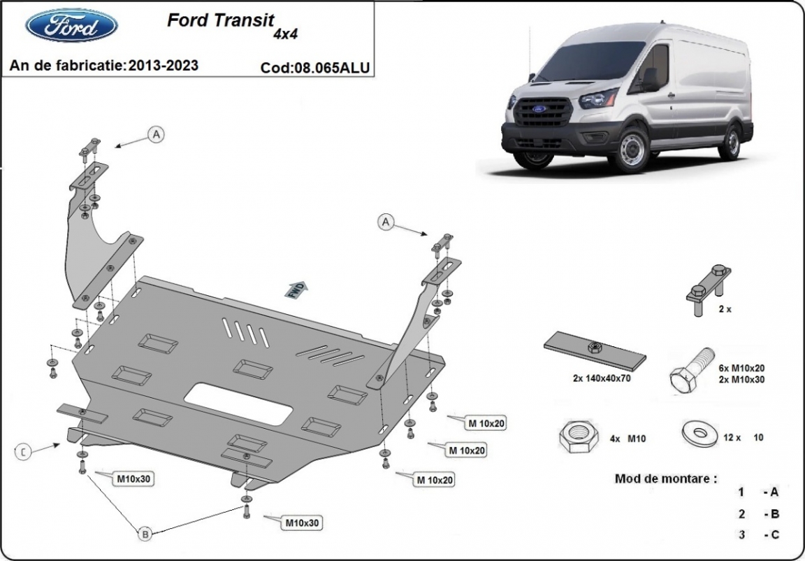 Aluminium Unterfahrschutz für Motor der Marke Ford Transit 4x4 (2013-2023)