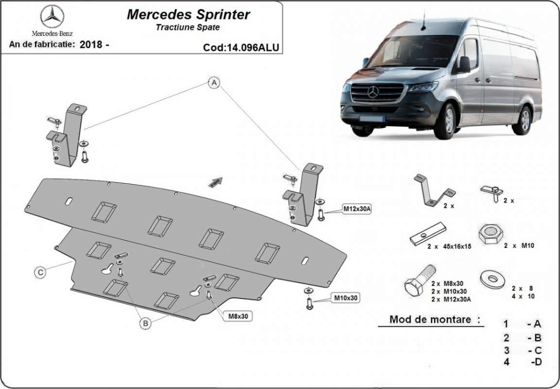 Die Abschirmung schützt: motor, kühler, vordere stossfänger Mercedes Sprinter - RWD - 2018 und 2026. Der Unterfahrschutz ist neu und passt perfekt für alle Mercedes Sprinter - RWD versionen, die zwischen 2018 und 2026 hergestellt wurden. Aus Aluminiumblech angefertigt mit einer Stärke von 3 mm. Die Schilde bestehen aus Aluminium, aber die Befestigungshalterungen bestehen aus Stahl. Schrauben, Mutter, Klips - alle Befestigungszubehör sind im Lieferung enthalten. Um mehr Schutz zu bieten gegen Korrosion wird der Unterfahrschutz elektrostatisch besprüht (Pulverbeschichtet) und bei 200o eingebrannt bzw. getrocknet. |
