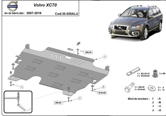 Die Abschirmung schützt: motor, getriebe, kühler Volvo XC70 - 2007 und 2016. Der Unterfahrschutz ist neu und passt perfekt für alle Volvo XC70 versionen, die zwischen 2007 und 2016 hergestellt wurden. Aus Aluminiumblech angefertigt mit einer Stärke von 3 mm. Die Schilde bestehen aus Aluminium, aber die Befestigungshalterungen bestehen aus Stahl. Schrauben, Mutter, Klips - alle Befestigungszubehör sind im Lieferung enthalten. Um mehr Schutz zu bieten gegen Korrosion wird der Unterfahrschutz elektrostatisch besprüht (Pulverbeschichtet) und bei 200o eingebrannt bzw. getrocknet. |