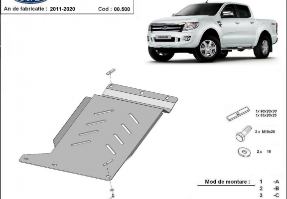 Die Abschirmung schützt: getriebe Ford Ranger - 2011 und 2020. Der Unterfahrschutz ist neu und passt perfekt für alle Ford Ranger versionen, die zwischen 2011 und 2020 hergestellt wurden. Aus Stahlblech angefertigt mit einer Stärke von 3 mm. Schrauben, Mutter, Klips - alle Befestigungszubehör sind im Lieferung enthalten. Um mehr Schutz zu bieten gegen Korrosion wird der Unterfahrschutz elektrostatisch besprüht (Pulverbeschichtet) und bei 200o eingebrannt bzw. getrocknet. |