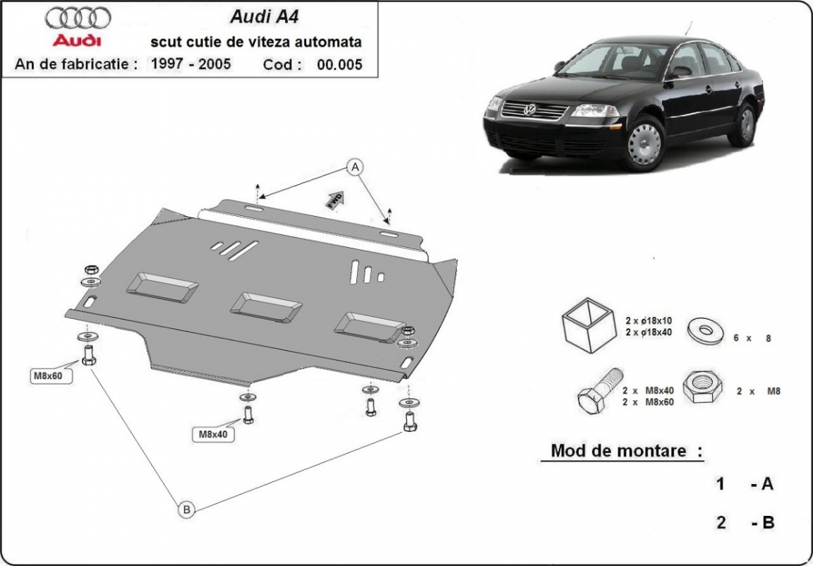 Unterfahrschutz aus Stahl für Automatikgetriebe der Marke VW Passat B5, B5.5 (1997-2005)
