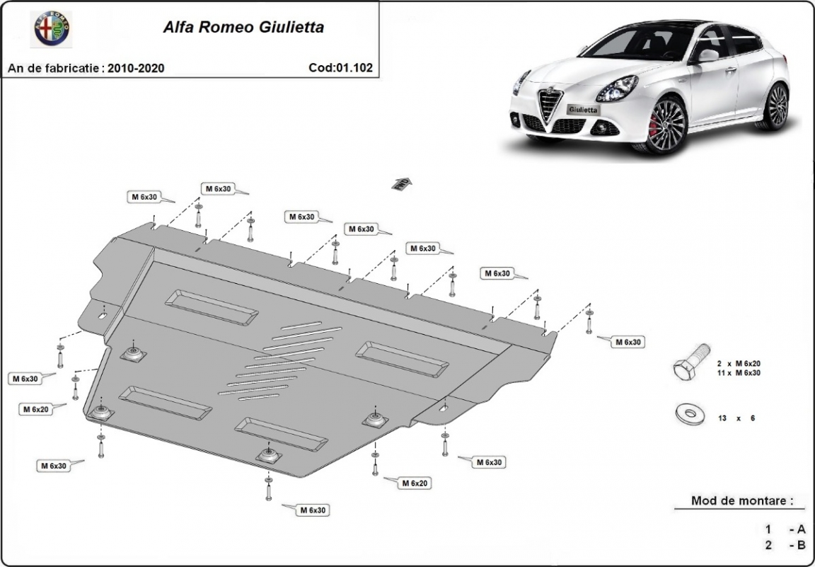 Unterfahrschutz für Motor der Marke Alfa Romeo Giulietta (2010-2020)