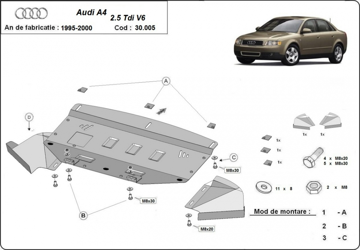Unterfahrschutz für Motor der Marke Audi A4 B5 (1997-2000)