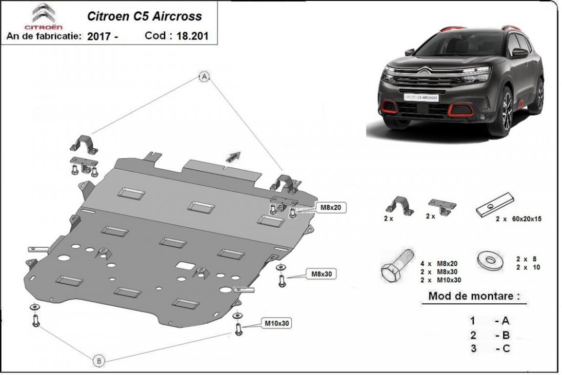 Unterfahrschutz für Motor der Marke Citroen C5 Aircross (2017-2026)