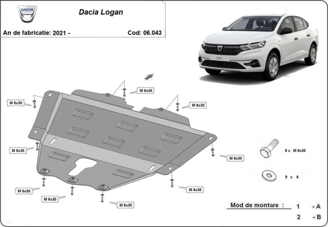 Unterfahrschutz für Motor der Marke Dacia Logan (2021-2026)