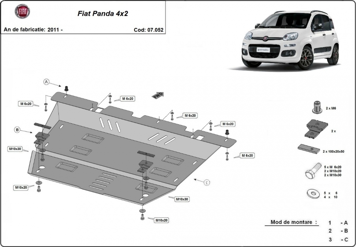 Unterfahrschutz für Motor der Marke Fiat Panda 4x2 (2011-2026)