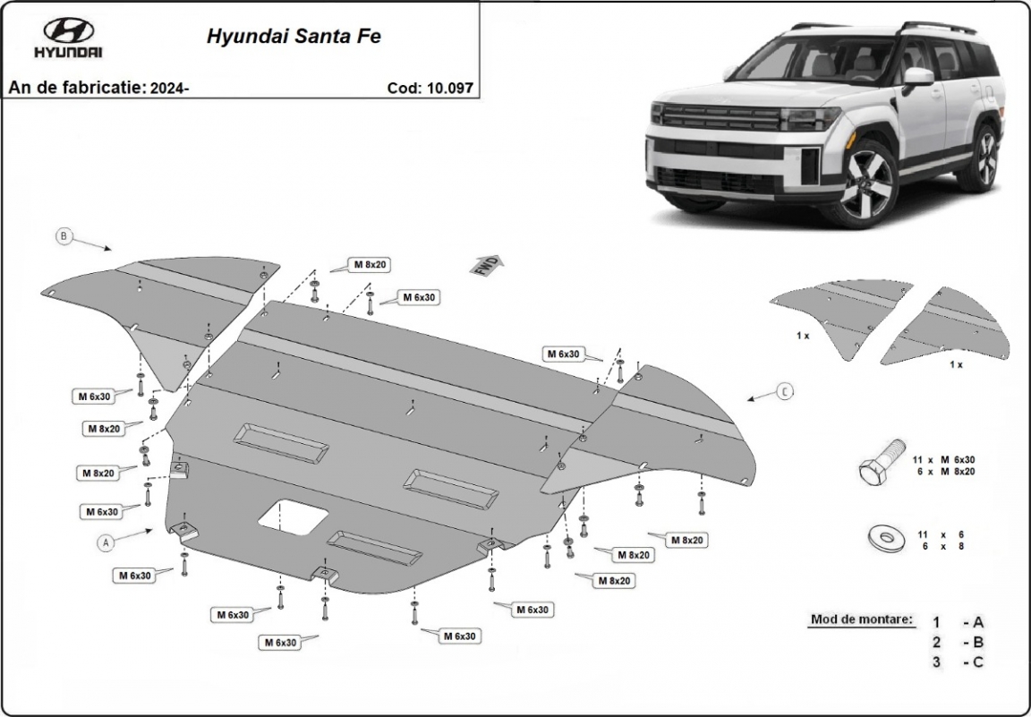 Unterfahrschutz für Motor der Marke Hyundai Santa Fe (2024-2026)