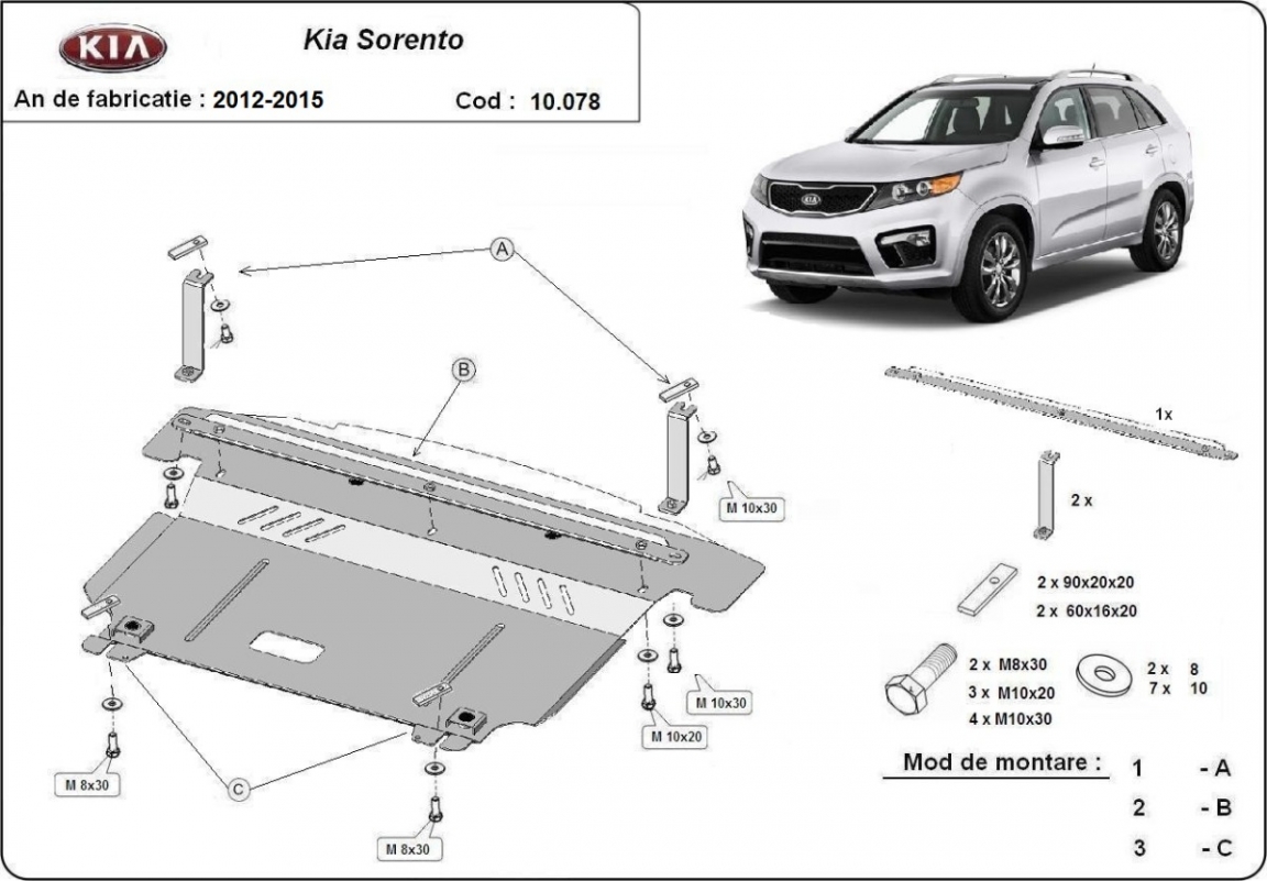 Unterfahrschutz für Motor der Marke Kia Sorento XM (2012-2014)
