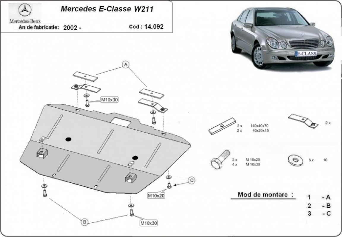 Unterfahrschutz für Motor der Marke Mercedes E-Class W211 (2002-2008)