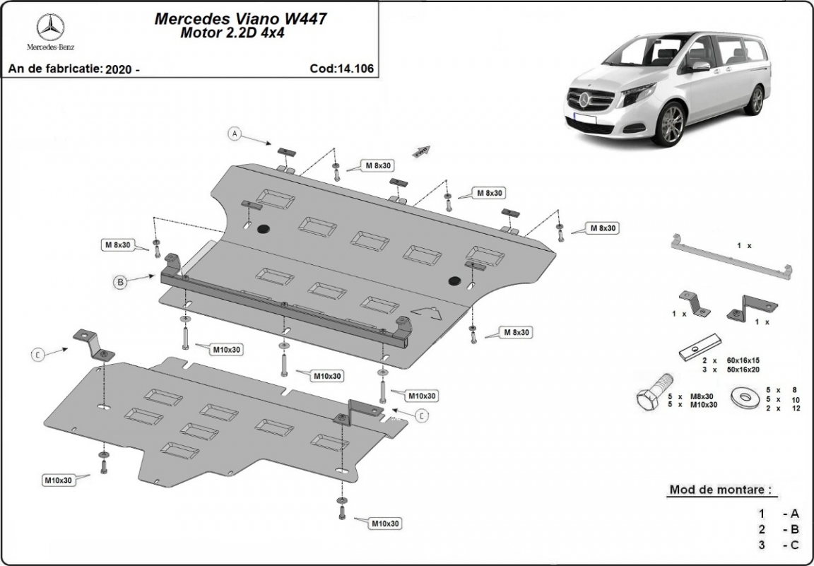 Unterfahrschutz für Motor der Marke Mercedes Viano W447, 2.2 D, 4x4 (2020-2026)
