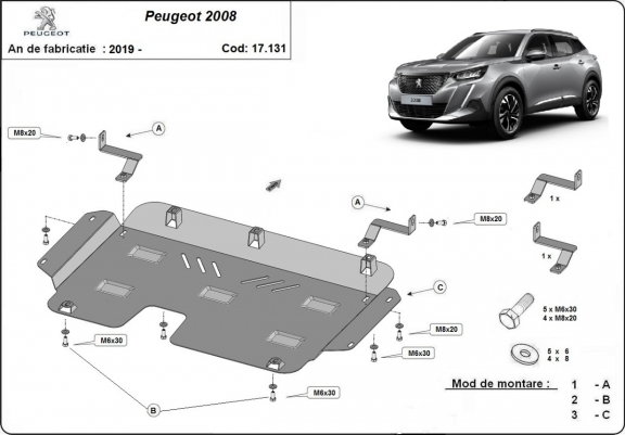 Unterfahrschutz für Motor der Marke Peugeot 2008 (2019-2026)