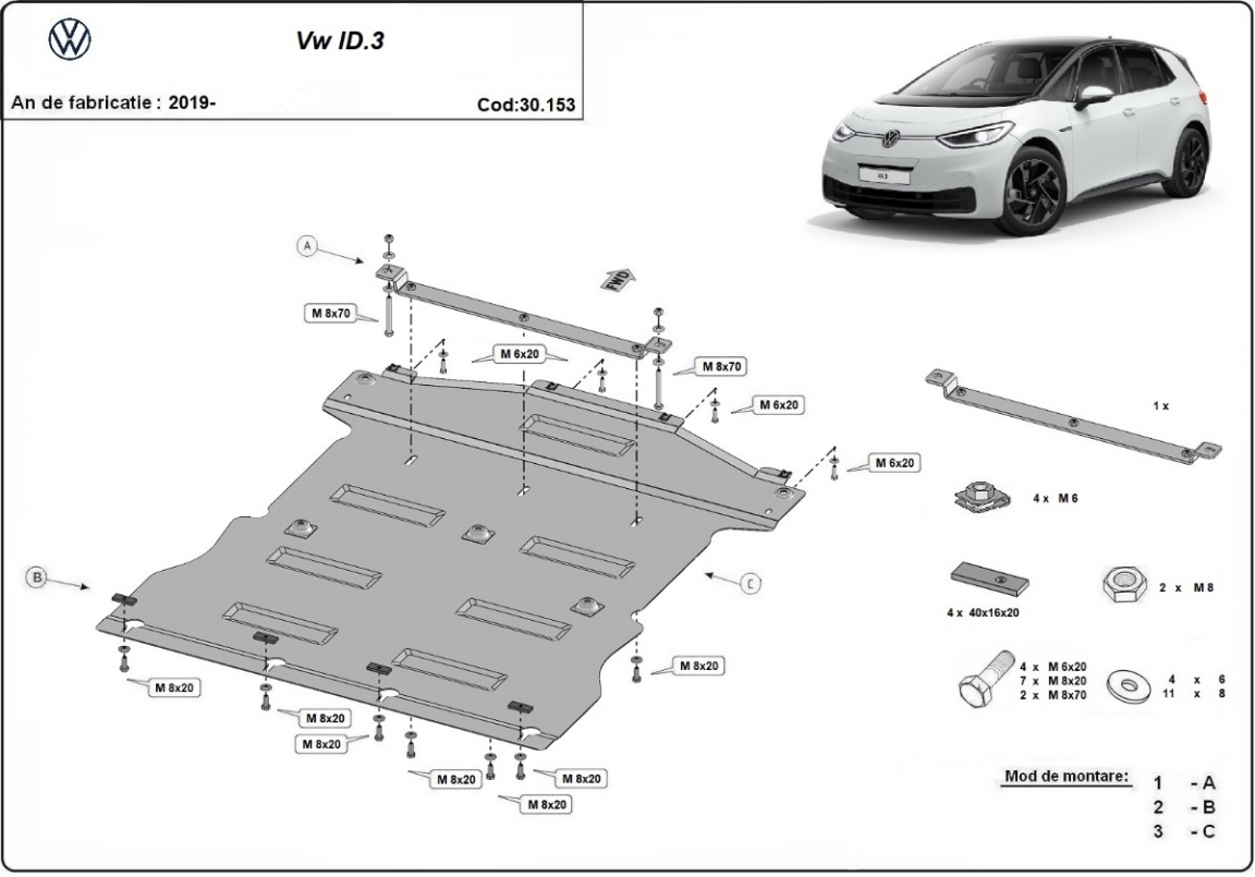 Unterfahrschutz für Motor der Marke Volkswagen ID 3 (2019-2026)