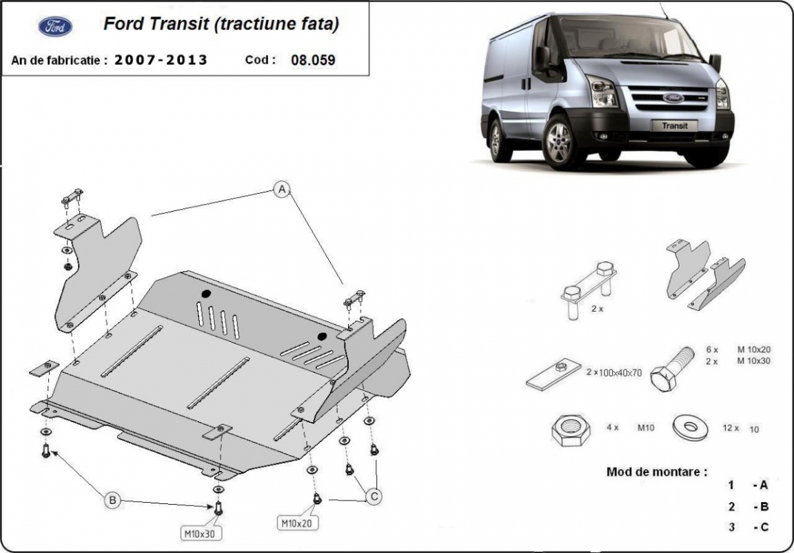 Unterfahrschutz für Motor der Marke Ford Transit - Vorderradantrieb (2007-2013)