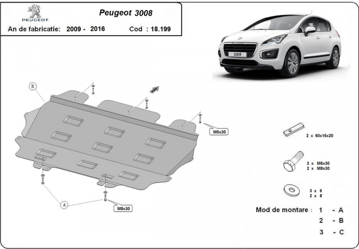 Unterfahrschutz für Motor und Getriebe aus Stahl für Peugeot 3008