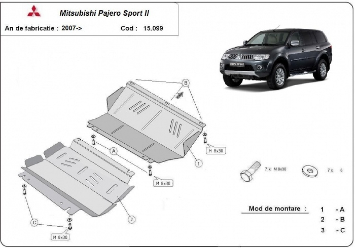 Die Abschirmung schützt: motor, kühler Mitsubishi Pajero Sport 2 - 2008 und 2016. Der Unterfahrschutz ist neu und passt perfekt für alle Mitsubishi Pajero Sport 2 versionen, die zwischen 2008 und 2016 hergestellt wurden. Aus Stahlblech angefertigt mit einer Stärke von 3 mm. Schrauben, Mutter, Klips - alle Befestigungszubehör sind im Lieferung enthalten. Um mehr Schutz zu bieten gegen Korrosion wird der Unterfahrschutz elektrostatisch besprüht (Pulverbeschichtet) und bei 200o eingebrannt bzw. getrocknet. |