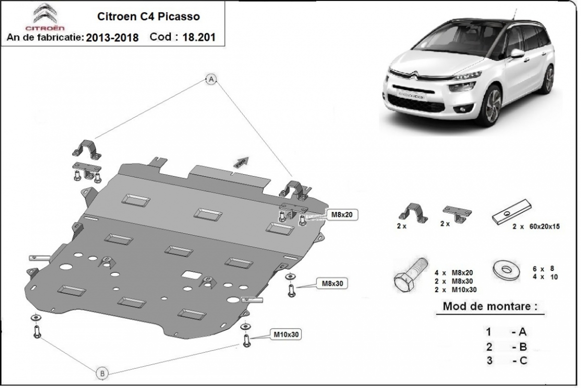Unterfahrschutz für Motor der Marke Citroen C4 Picasso (2013-2018)